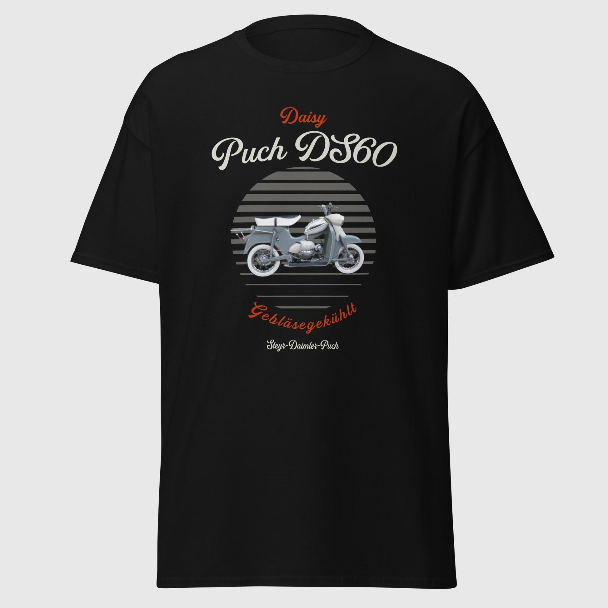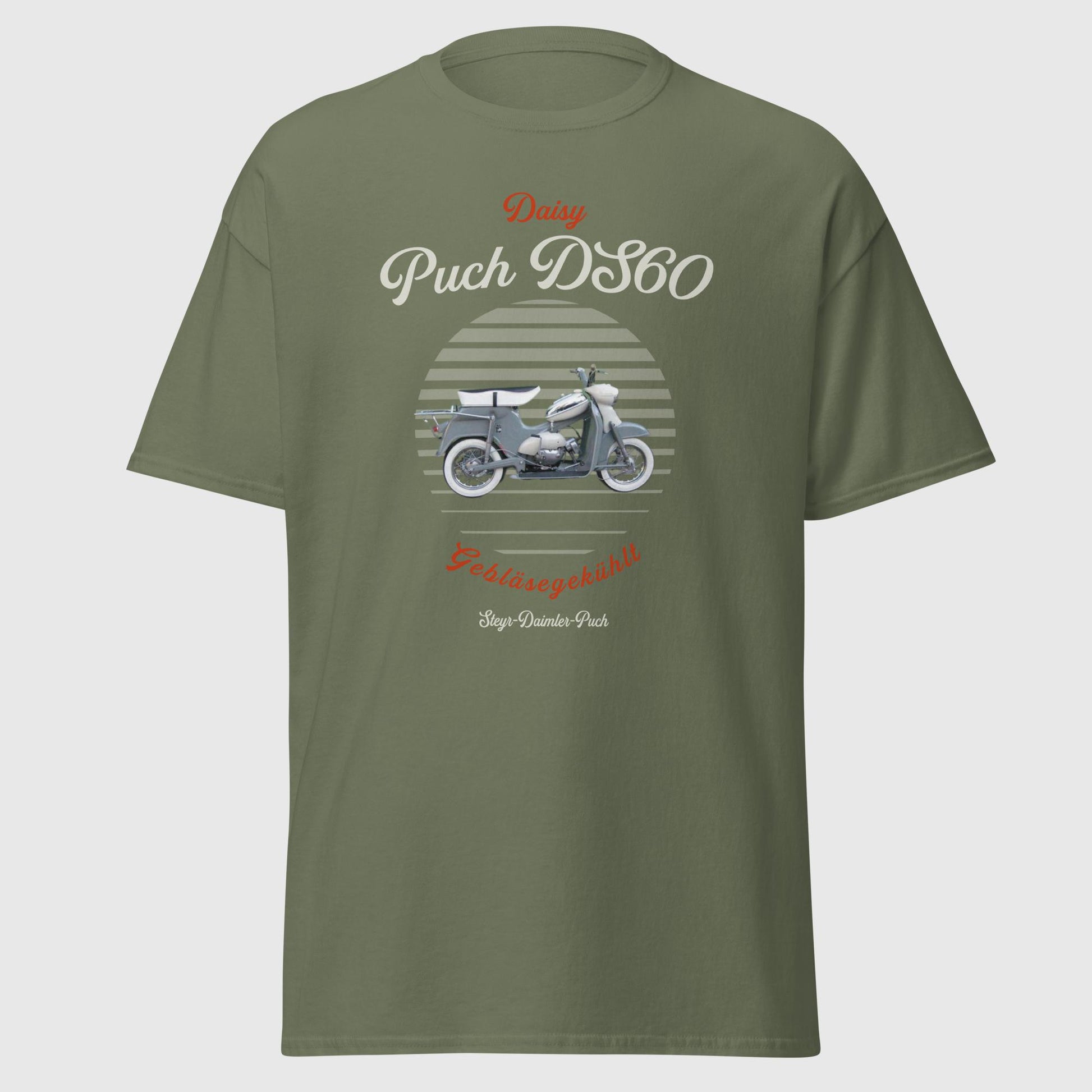 Das Basic Puch DS60 T-Shirt ist ein absolutes Must-Have für alle Fans des DS60 Mopeds. Mit seinem einzigartigen Design und dem markanten Bild des Mopeds ist es ein zeitloses Kleidungsstück, das deinem Look eine Portion Retro-Charme verleiht und deine Verbundenheit zur Marke Puch sowie zum DS60 zum Ausdruck bringt.