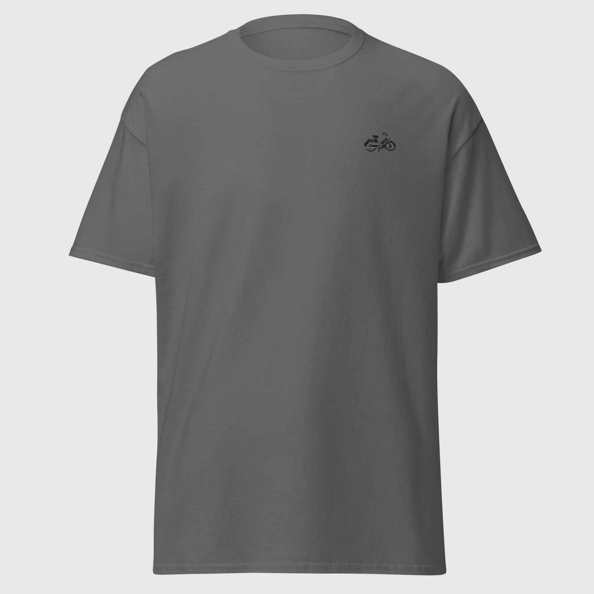 Hergestellt aus hochwertiger Baumwolle bietet das Puch Maxi T-Shirt nicht nur außergewöhnlichen Tragekomfort, sondern auch eine optimale Passform. Die dezent gestickte Darstellung des Maxi Mopeds fängt die ikonische Ästhetik und den Geist des Puch Maxi ein und macht dieses T-Shirt zu einem Must-Have für echte Moped-Enthusiasten.