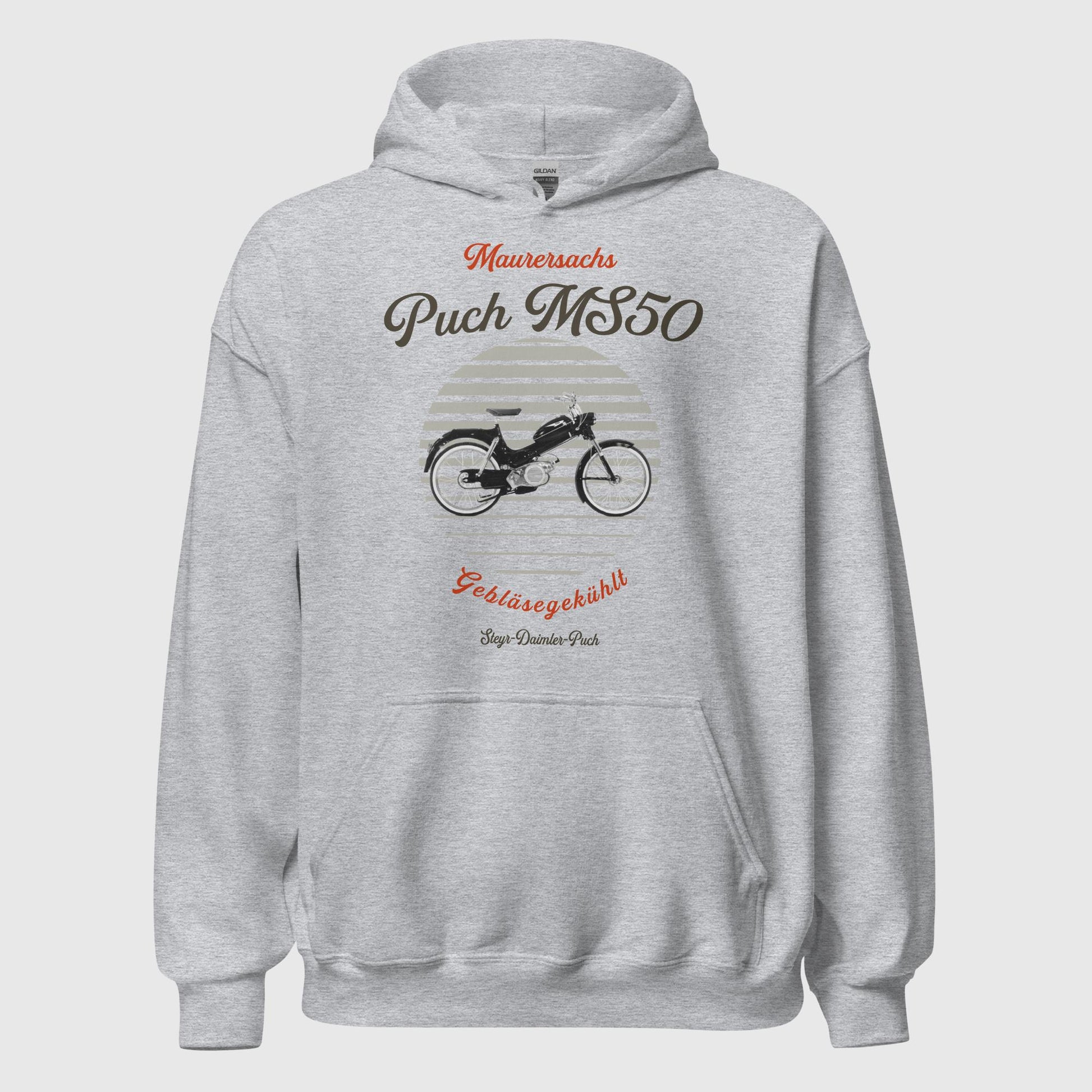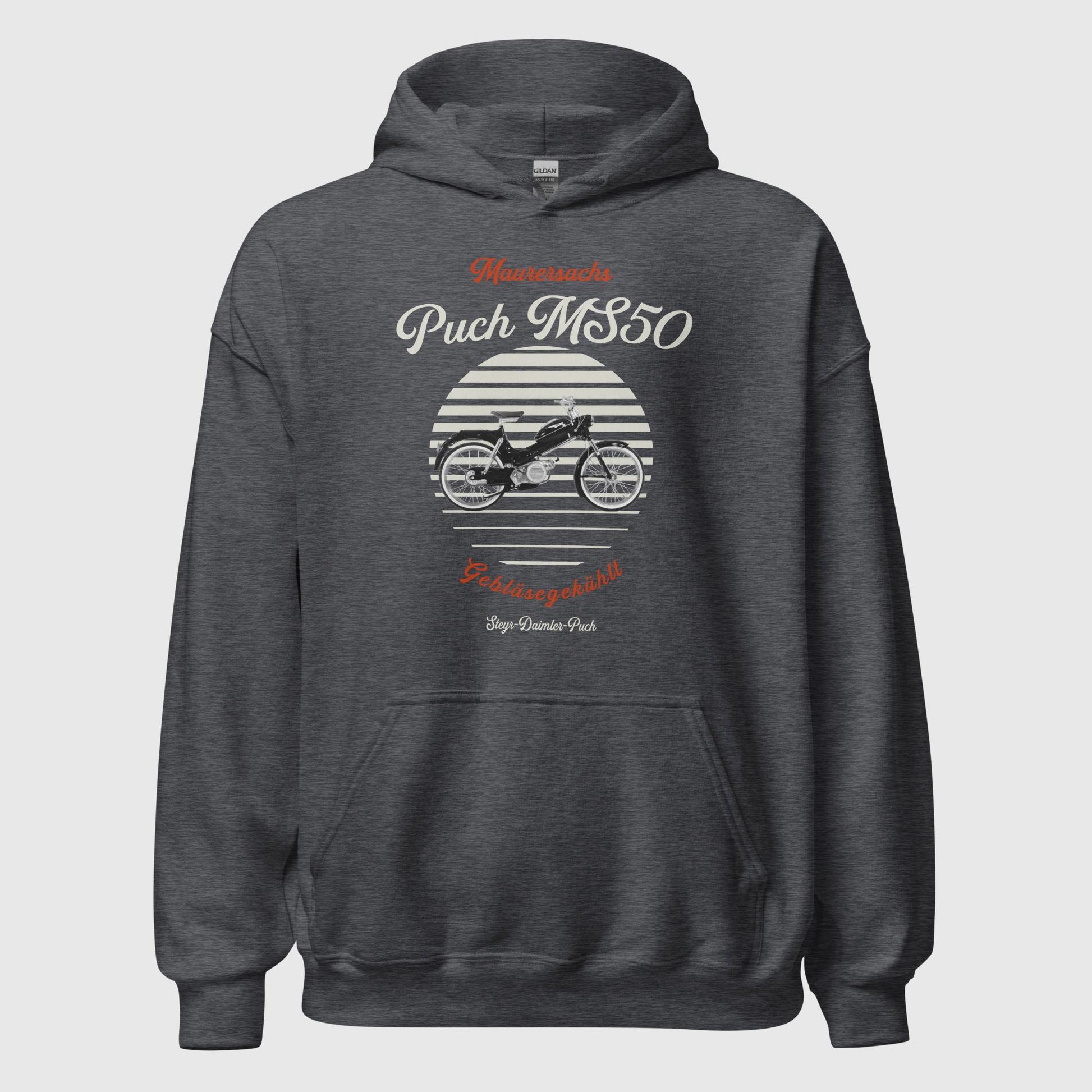 Der Basic Puch MS50 Hoodie ist ein absolutes Must-Have für alle Fans des MS50 Mopeds. Mit seinem schlichten Design und dem aufgedruckten Logo ist er ein zeitloses Kleidungsstück, das deinem Look eine Portion Retro-Charme verleiht und deine Verbundenheit zur Marke Puch sowie zum MS50 zum Ausdruck bringt.