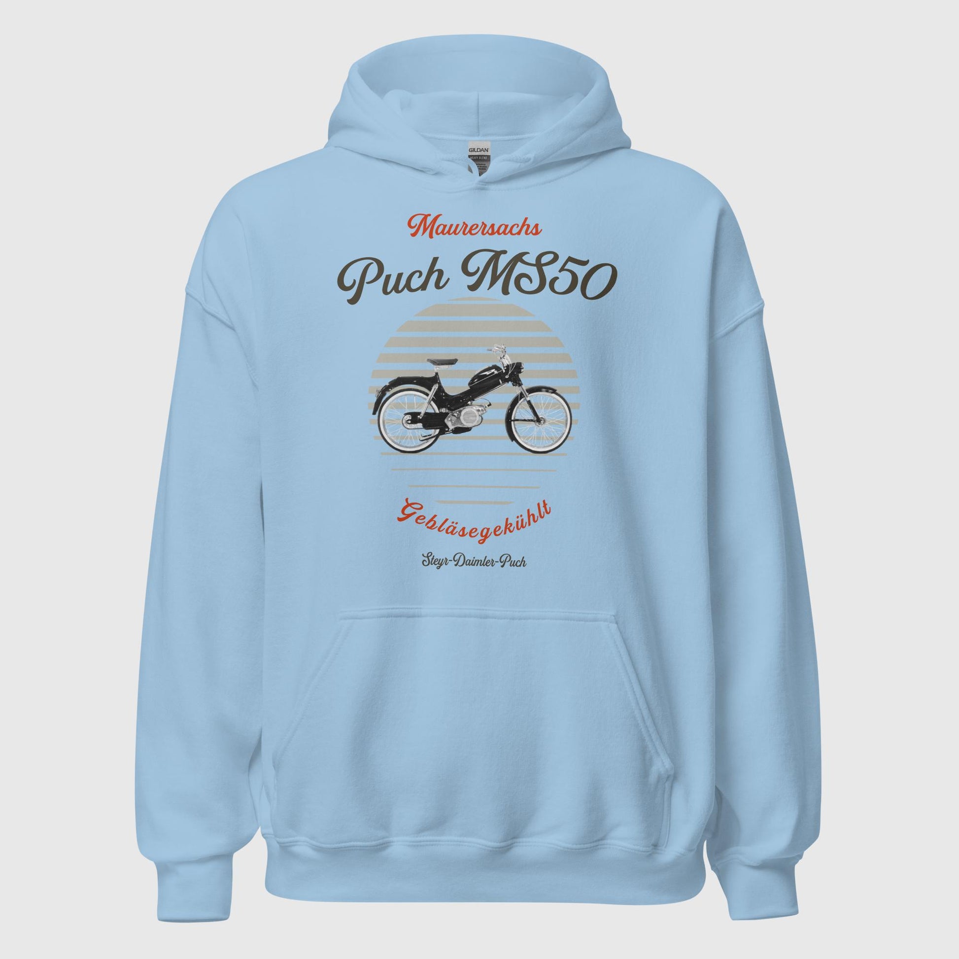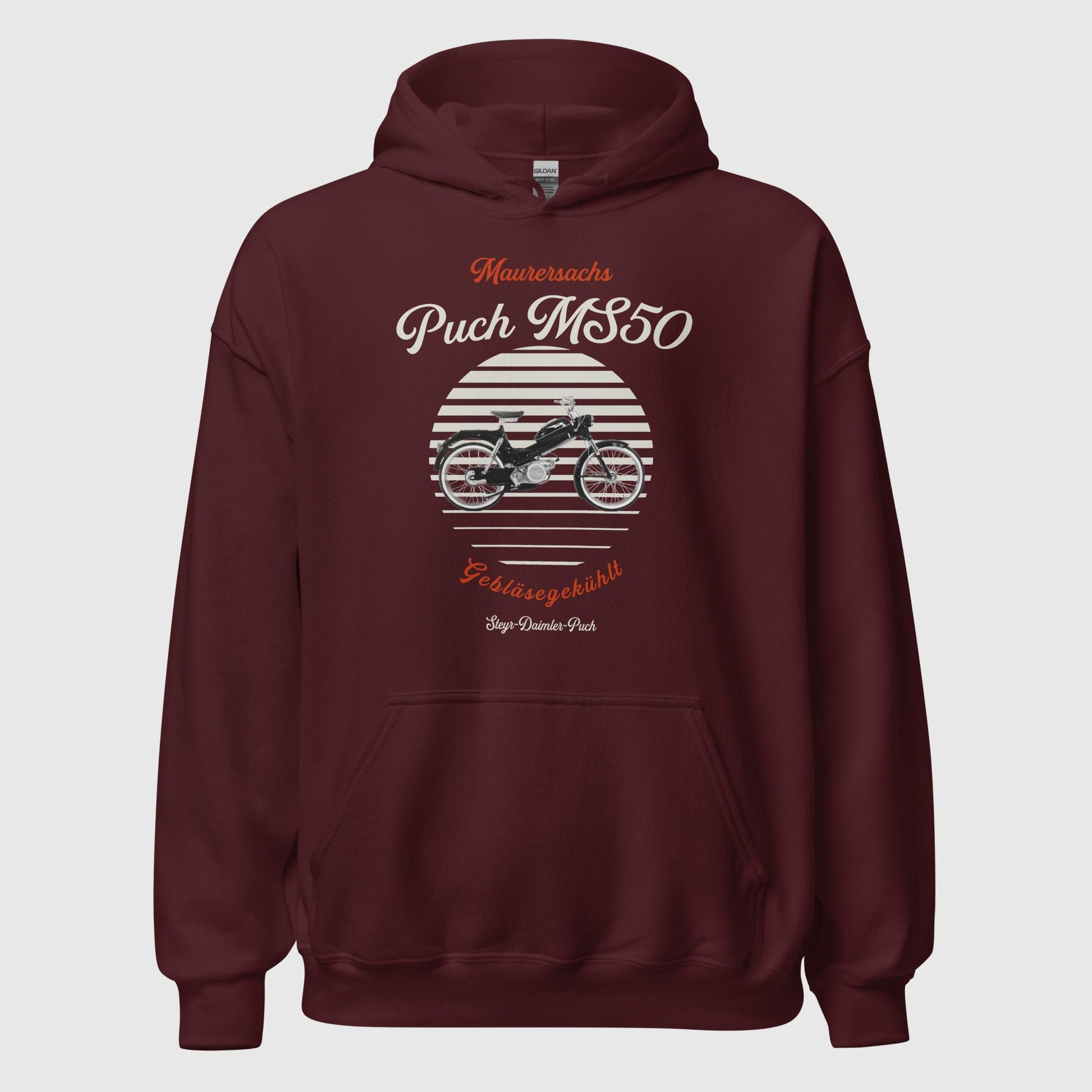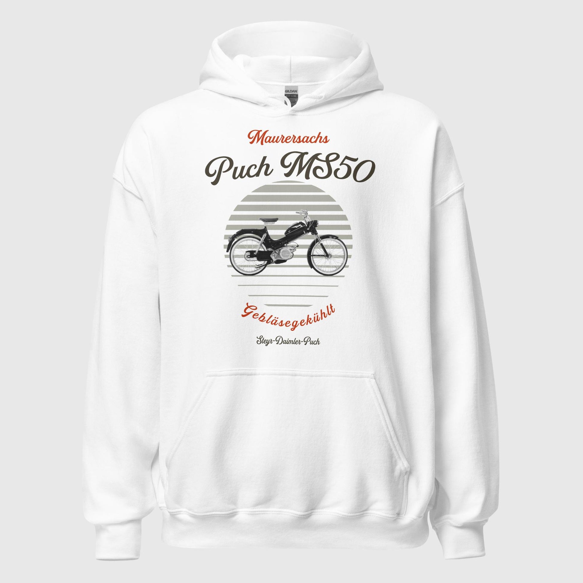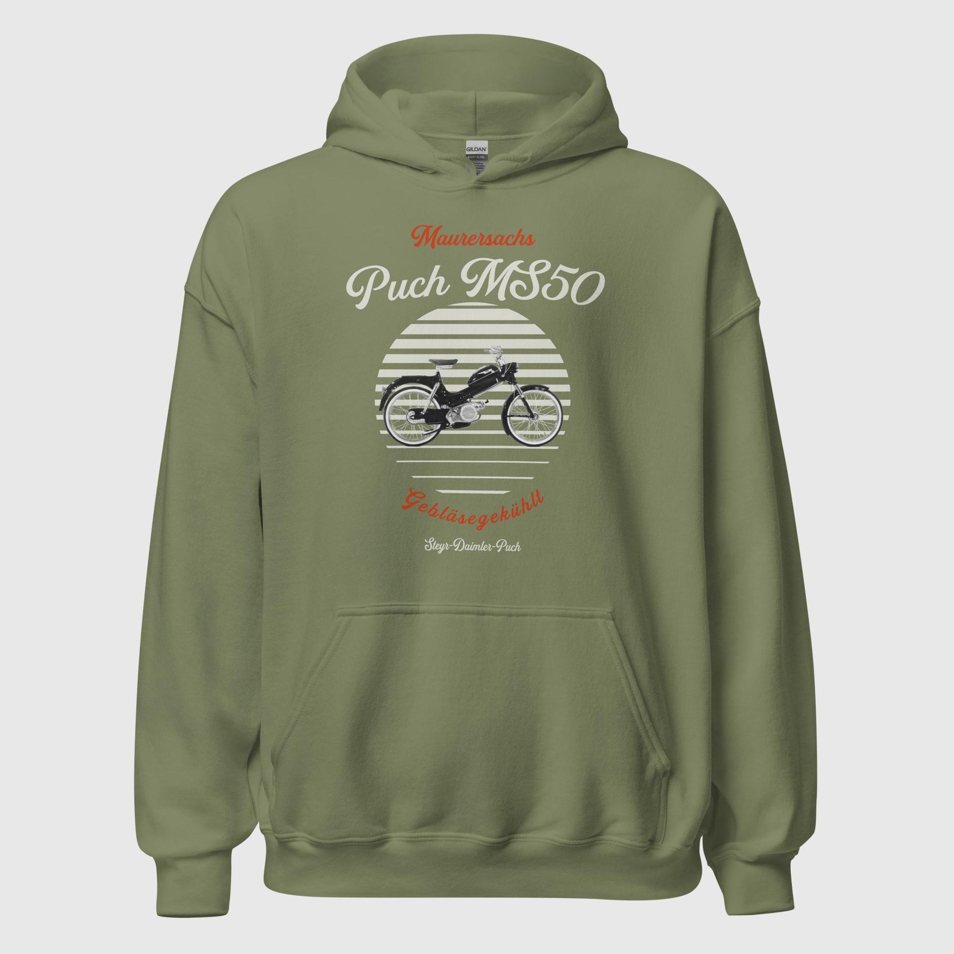 Das aufgedruckte Puch MS50 Logo auf der Vorderseite macht diesen Hoodie zu einem echten Blickfang. Es symbolisiert die Geschichte und den Charme des MS50 Mopeds und zeigt deine Leidenschaft für diese legendäre Maschine.