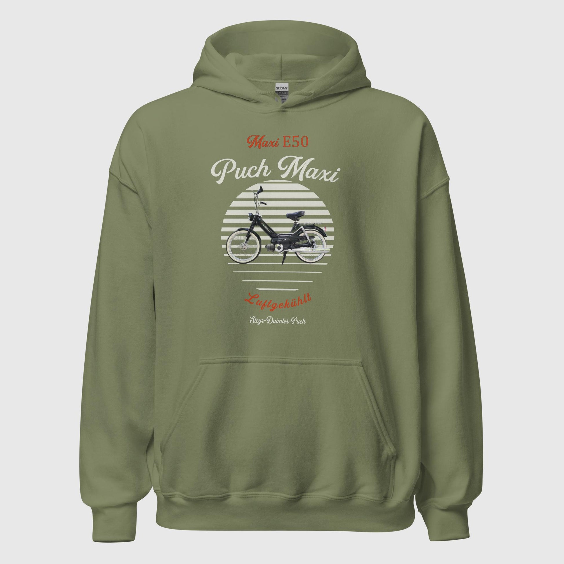 Mit diesem Hoodie können Sie Ihre Verbindung zum Puch Maxi Moped stilvoll ausdrücken. Ob Sie ein stolzer Besitzer sind oder einfach die Vintage-Ästhetik mögen, der Puch Maxi Hoodie ist die perfekte Ergänzung für Ihre Freizeitgarderobe und ein Blickfang, der Ihre Leidenschaft für das Puch Maxi Moped unterstreicht.