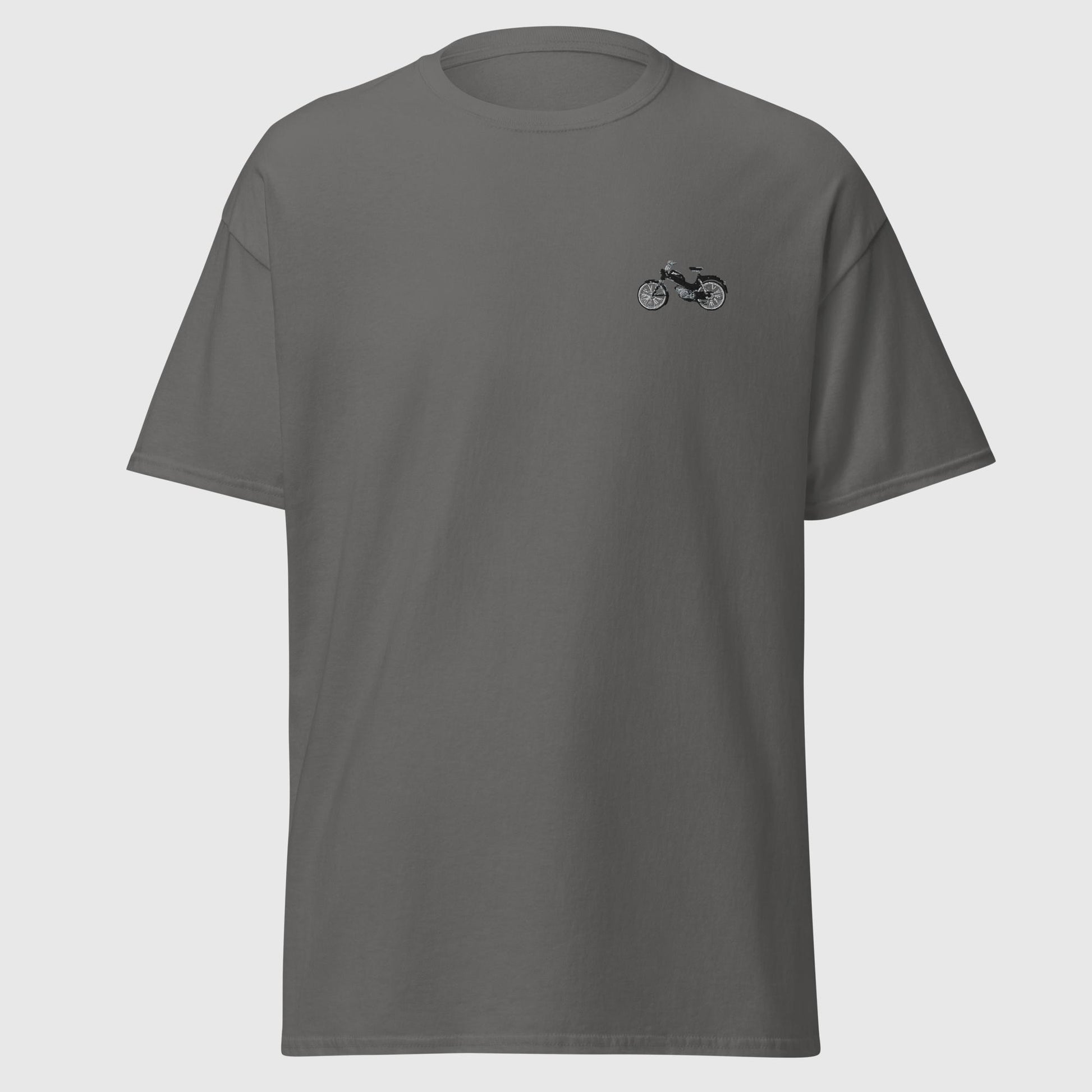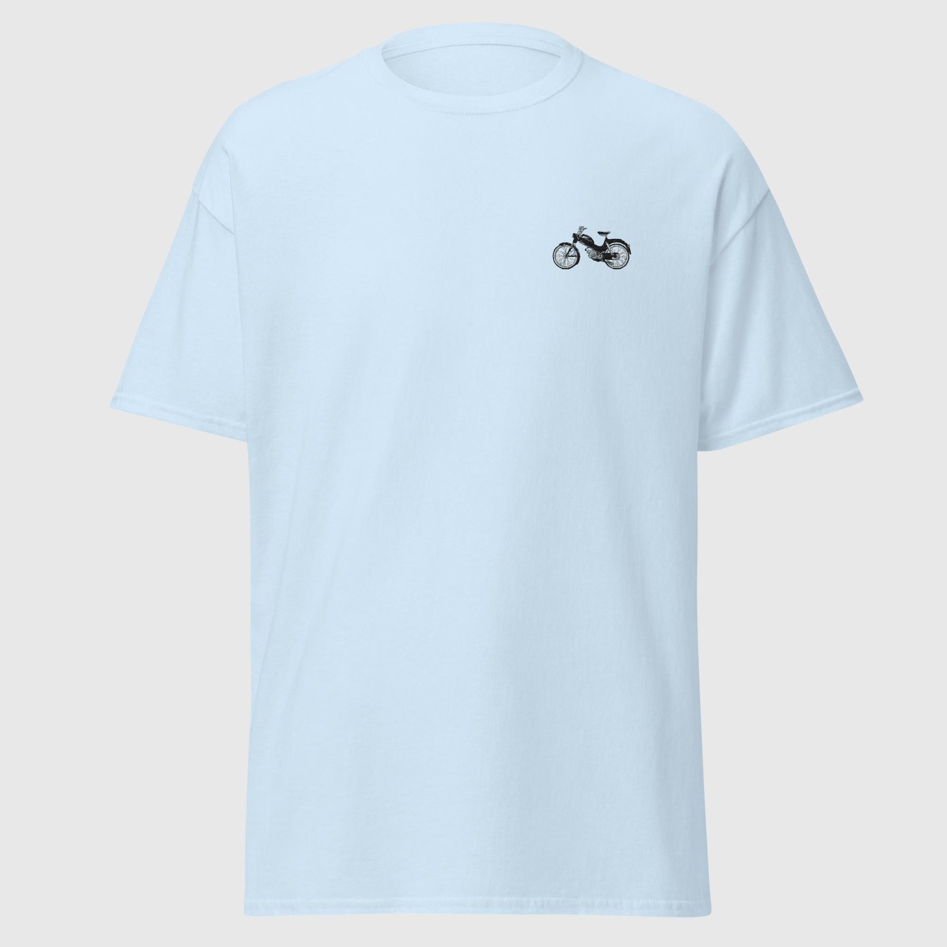 Das aufgedruckte Abbild des Puch MS50-Mopeds auf der Brust macht dieses T-Shirt zu einem echten Blickfang. Es fängt die Nostalgie und den Charme des MS50-Mopeds ein und zeigt deine Leidenschaft für diese legendäre Maschine.
