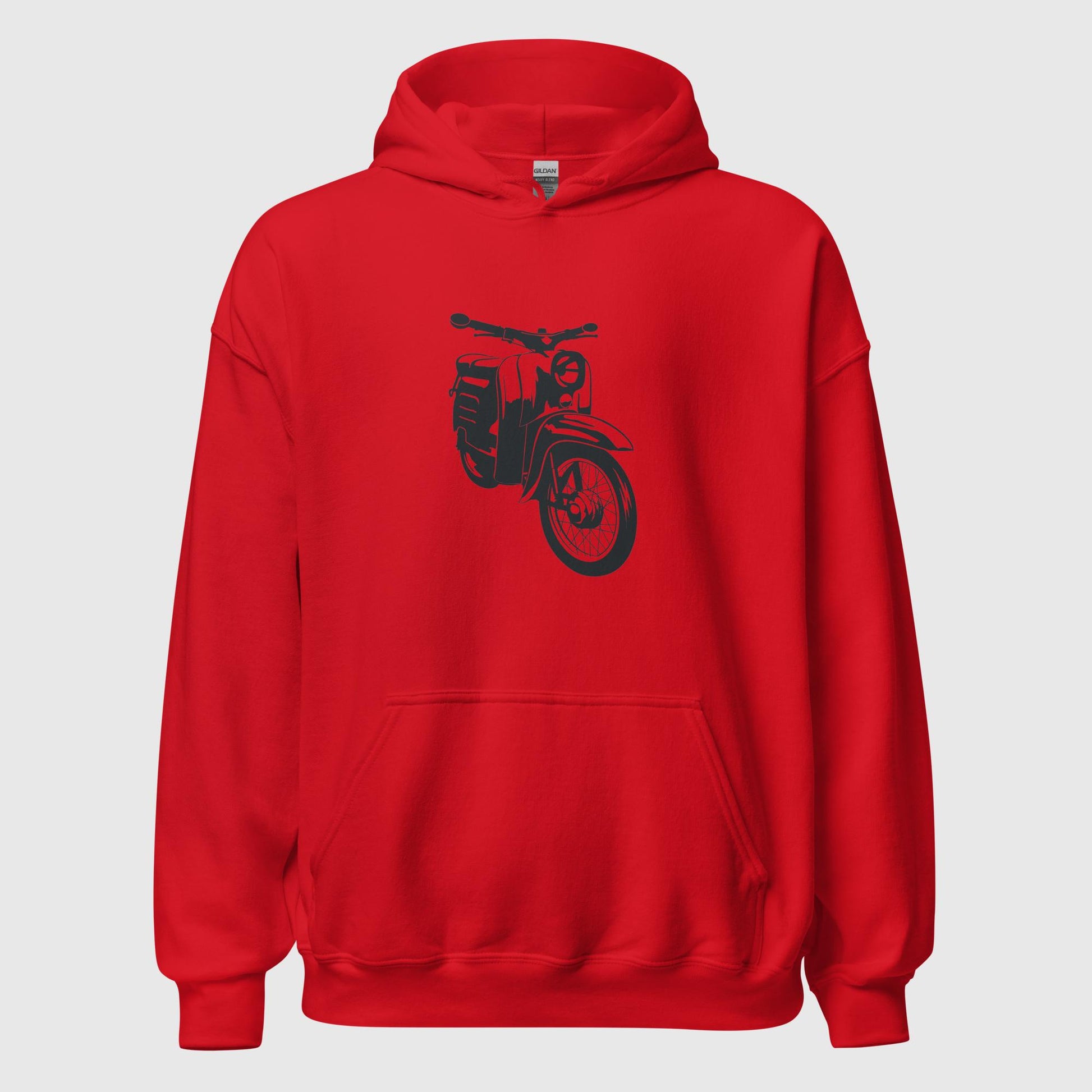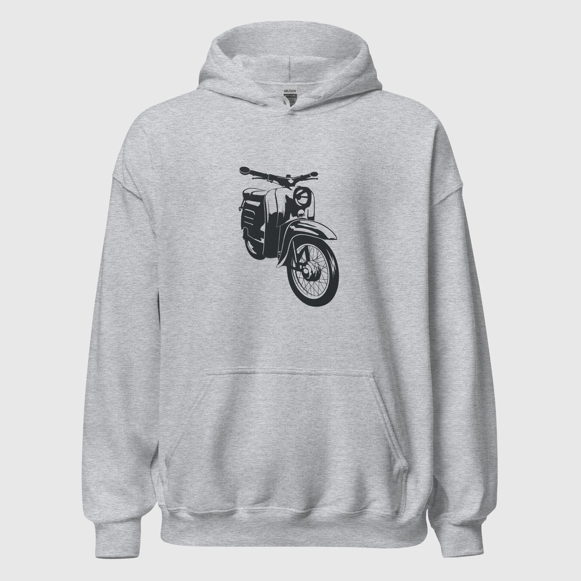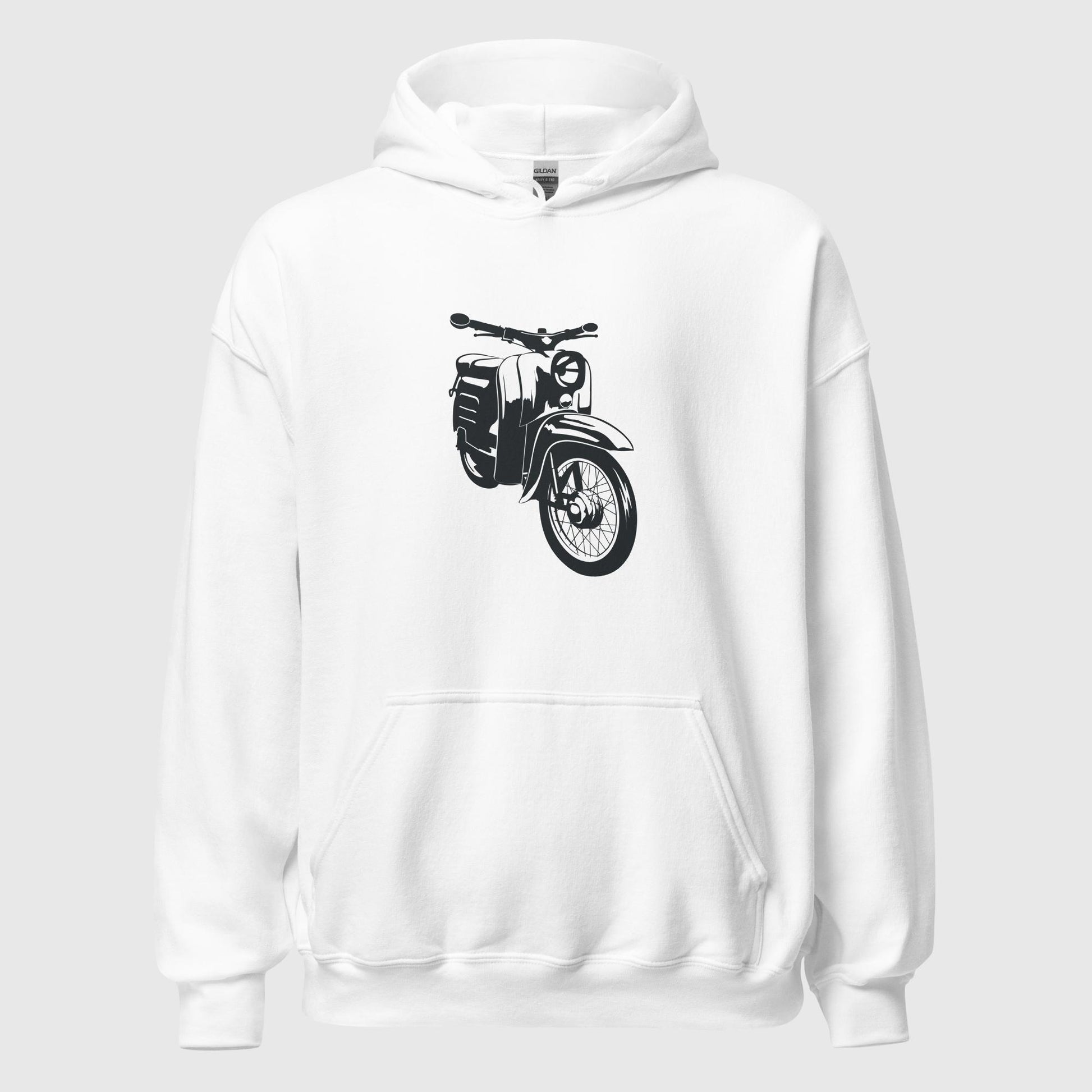 Das aufgedruckte Abbild der Simson Schwalbe auf der Vorderseite des Hoodies macht ihn zu einem echten Blickfang. Es fängt die Nostalgie und den Charme der Schwalbe ein und zeigt deine Leidenschaft für dieses legendäre Moped.